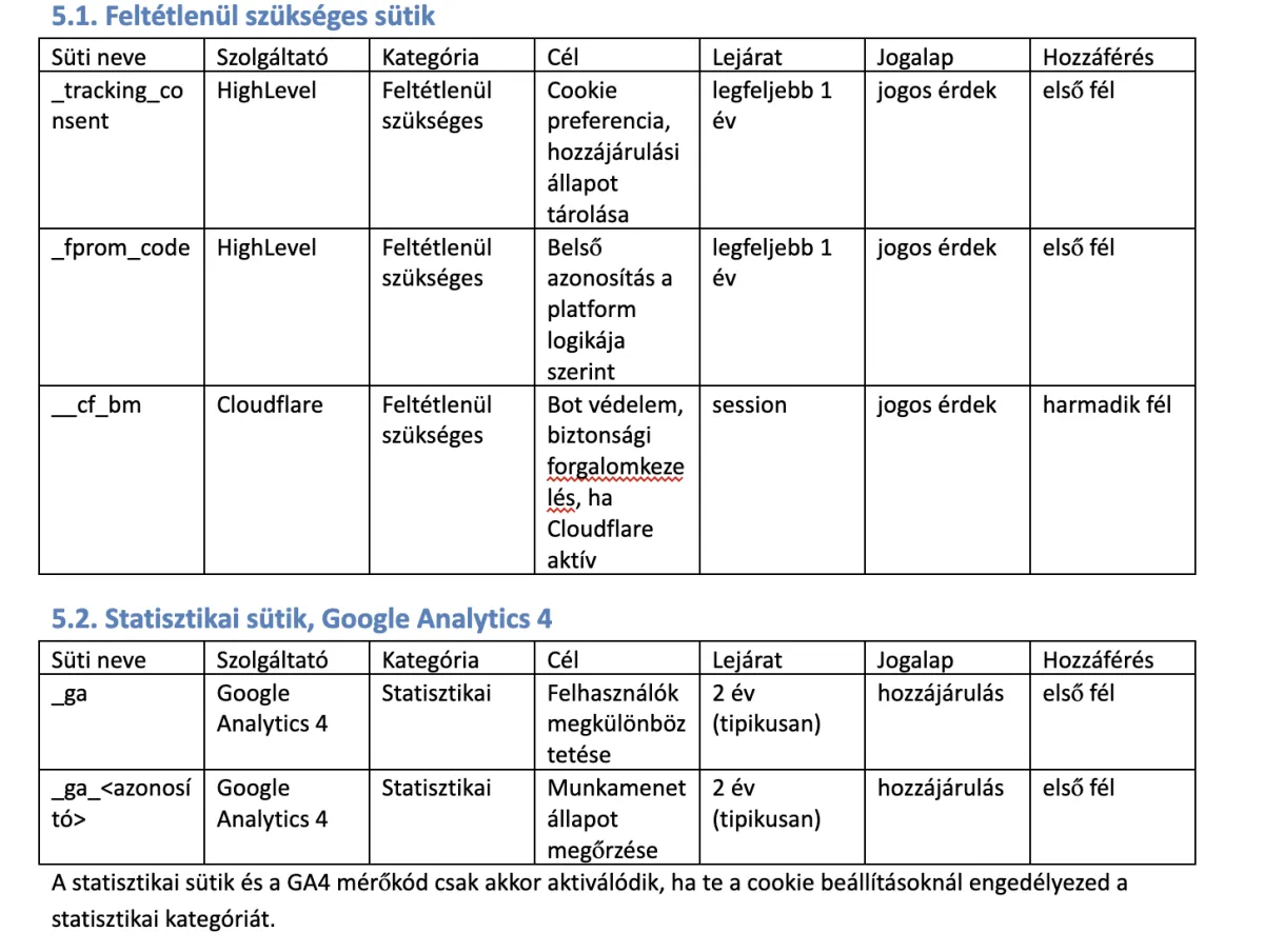 Platformszolgáltató és technikai üzemeltető: HighLevel, Inc., 1801 N. Lamar St., Suite 600, Dallas, Texas 75202, USA.